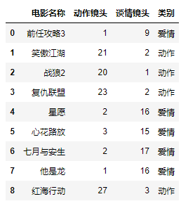 train = samples[['动作镜头','谈情镜头']]